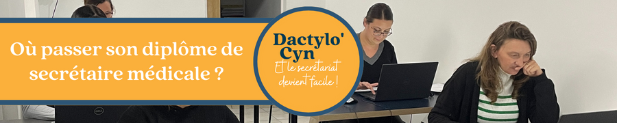 n professionnelle. Grâce à notre CV-thèque, nous simplifions le processus de recrutement, connectant nos diplômé(e)s qualifié(e)s avec des employeurs à la recherche de talents dynamiques. Choisissez Dactylo'Cyn pour non seulement acquérir les compétences nécessaires, mais aussi pour propulser votre carrière de secrétaire médicale vers de nouveaux sommets. Rejoignez-nous et devenez un acteur clé dans le secteur en pleine croissance de la santé !